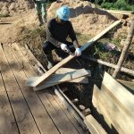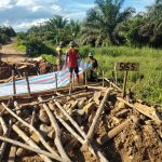 Bengkayang – Anggota Satgas TMMD 111/ Kodim 1202/SKW Kopda bernad lanjutkan pengerjaan SAS ke-5 pembangunan jembatan, membuat papan mal untuk penahan cor