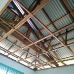 Bengkayang – TNI Manunggal Membangun Desa (TMMD) ke-111 Kodim 1202/Skw dalam pengerjaan kerangka plafon di PUSTU tinggal menyisakan sedikit lagi yang sedang