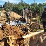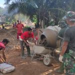 Bengkayang – Kekompakan dan kebersamaan yang dilakukan oleh Satgas TMMD ke-111 Kodim 1202/Skw dalam pengerjaan pembangunan fisik berupa jembatan beton terus digenjot,