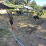 Bengkayang – Proses persiapan material besi beton oleh Satgas, Proses persiapan material pembangunan jembatan oleh Satgas di desa setangau jaya kec. seluas