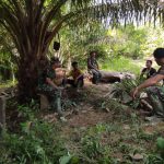 BENGKAYANG – Anggota Satgas TMMD 111/Kodim 1202/Singkawang sedang beristirahat setelah mengerjakan sasaran fisik TMMD, Dusun Trimulya Desa Sentangau Jaya Jalan Trans Segorong