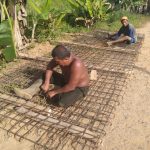 Anggota Satgas TNI Manunggal Membangun Desa (TMMD) ke-111 Kodim 1202/Singkawang bersama warga kembali lankutka pekerjaan rangkai besi cor untuk jembatan ukuran 3