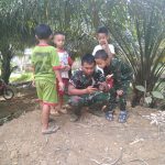 BENGKAYANG – Selain pengerjaan sasaran secara fisik seperti pembangunan jalan, anggota TMMD di Desa Sentangau Jaya juga memberikan sosialisasi kepada anak-anak desa