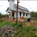 Kegiatan pembangunan pagar gereja di dusun Trymulia, desa Sentangau Jaya, kecamatan Seluas, kabupaten Bengkayang oleh Satgas TMMD ke-111 dan Warga masyarakat