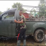 Bengkayang- Anggota satgas TMMD ke-111 Kodim 1202/Skw dengan semangat angkut perlengkapan untuk pengerjaan pembangunan jembatan ke lokasi yang dituju Desa Sentangau