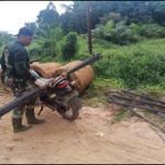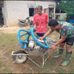 Bengkayang- anggota satgas TMMD Ke-111 kodim 1202/SKW angkut material besi menggunakan sepeda motor untuk mempercepat penggangkutan untuk bahan pengecoran pembangunan jembatan