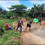 BENGKAYANG – Anggota Satgas TMMD Ke-111 kodim 1202/Singkawang melaksanakan pembuatan pondasi pagar gedung gereja Santo Kristoforus, Desa Sentangau Jaya Jalan Trans