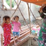 Bengkayang – Personel Satuan Tugas (Satgas) TNI Manunggal Membangun Desa (TMMD) ke- 111 Kodim 1202/Skw bersama bergotong royong membangun rumah warga, Rabu