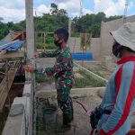 Bengkayang – Personel Satuan Tugas (Satgas) TNI Manunggal Membangun Desa (TMMD) ke- 111 Kodim 1202/Skw bersama bergotong royong membangun rumah warga, Rabu