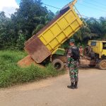 Bengkayang- Personel Satgas TMMD Ke-111 Kodim 1202/Singkawang dibantu warga Tepatnya di Desa Sentangau Jaya, Kecamatan Seluas, Kabupaten Bengkayang warga sangat antusias mengangkut