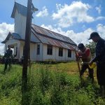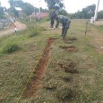 Bengkayang- Satgas TNI Manunggal Membangun Desa (TMMD) Ke-111 Kodim 1202/Singkawang Melakukan Pengukuran Pondasi Pembuatan Pagar Gereja Katolik Santo Kristoforus Dusun Trimulya, Desa