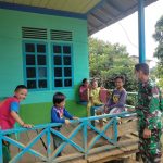 Bengkayang – Anggota Satgas TMMD ke -111 Kodim 1202/Singkawang Serda Alpon diwaktu senggangnya menyempatkan diri untuk membaur dan berkomsos bersama warga dari