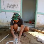 Bengkayang – Anggota Satgas TMMD Ke-111 Kodim 1202/Skw terus menyiasatin pemotongan keramik putih dengan alat khusus untuk menghasilakan pemotongan yang rapi di