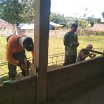 BENGKAYANG – Satgas TNI Manunggal Membangun Desa (TMMD) Ke-111 Kodim 1202/Singkawang bersama warga melaksanakan pembuatan rangka besi untuk Pondasi Pagar Gereja Santo