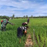Bengkayang – Anggota Satgas TMMD Ke-111 Kodim 1202/Skw, Praka Firmansyah membatu menaburkan pupuk untuk Padi warga sekitar. Menaburkan Pupuk padi ini dilakukan