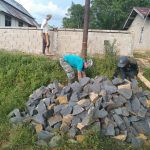Bengkayang – Bergotong royong dan memindahkan Matrial Batu belah untukmendekatkan bahan Bangunan ini ke sekitar lokasi, oleh Tim satgas TNI Manunggal Membangun