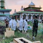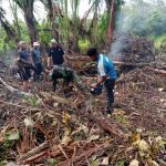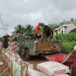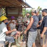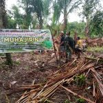 Kubu Raya – Disela kegiatan TMMD ke-111 Kodim 1207/Pontianak, anggota satgas bersama masyarakat Persatuan Perhimpunan Fardhu Kifayah Al-Muhajirin melaksanakan kegiatan gotong royong