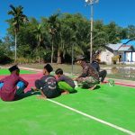 Kubu Raya – Disamping kegiatan fisik rabat beton jalan, anggota satgas TMMD ke-111 Kodim 1207/Pontianak juga melakukan pengecatan lapangan badminton di