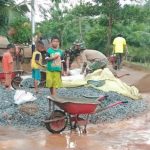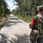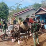 Kubu Raya – Satgas TMMD ke-111 Kodim 1207/PTK tetap melanjutkan pengecoran jalan meskipun cuaca hujan, Semangat Satgas TMMD ke-111 Kodim 1207/Pontianak