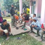 Kubu Raya – Disela-sela waktu luang, anggota satgas TMMD ke-111 Kodim 1207/Pontianak bercengkrama dengan warga. Personil TNI dan warga setempat disela-sela waktu