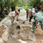 Kubu Raya – Pembangunan jalan sepanjang 1100 meter terus berlangsung. Semangat warga Dusun Maju Jaya membantu satgas TMMD ke-111 Kodim 1207/Pontianak tak