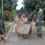 Kubu Raya – Anggota satgas TMMD ke-111 Kodim 1207/Pontianak meluangkan waktu disela-sela tugasnya untuk menjalin komunikasi sosial (komsos) dengan masyarakat disekitar lokasi