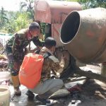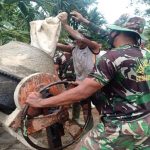 Kubu Raya – Satgas TNI Manunggal Membangun Desa ke 111 Kodim 1207/Pontianak kejar target dengan menggunakan mesin molen, Satgas TMMD terus menghidupkan
