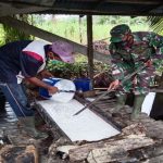 Kubu Raya – Selalu ada ditengah-tengah masyarakat dalam setiap kegiatan, anggota satgas TMMD ke-111 Kodim 1207/Pontianak Sertu Asiani bersama warga bergotong royong