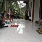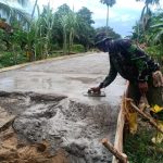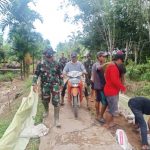 Kubu Raya – Disela waktu istirahat makan siang, salah satu anggota satgas TMMD ke-111 Kodim 1207/Pontianak kian intens melakukan kegiatan komunikasi sosial