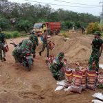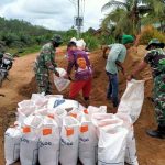 Kubu Raya – Anggota TNI yang tergabung satgas TMMD ke-111 kodim 1207/Pontianak memasukan pasir kedalam karung. Pasir tersebut digunakan sebagai material pembangunan