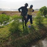 Pati – Anggota Satgas TNI Manunggal Membangun Desa TMMD ke-111 Kodim 0718/Pati bantu warga masyarakat Dukuh Pandahan, Desa Tamansari, Kecamatan Jaken, Kabupaten