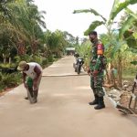 Kubu Raya – Pelaksanaan TMMD ke-111 Kodim 1207 Pontianak telah berakhir, tampak warga disela kesibukannya menyapu sisa-sisa pasir yang masih tersisa di