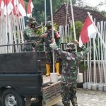 PATI – Pemasangan bendera umbul-umbul menjelang pelaksanaan upacara pembukaan TMMD Ke-111 di Desa Tamansari, Kecamatan Jaken, Kabupaten Pati terus dilaksanakan. Kapoktuud Kodim