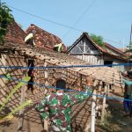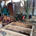 PATI – Anggota Satgas TNI Manunggal Membangun Desa (TMMD) Reguler Ke-111 Kodim 0718/Pati, di Desa Tamansari, memastikan hasil surutan kayu dan pemasangannya