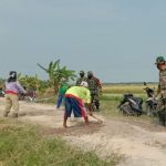 Pati-Setelah tadi malam diguyur hujan deras, sasaran pokok jalan sepanjang 1450 meter di program TMMD Reg.111 Kodim Pati kembali ditambah timbunan untuk