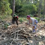 PATI – Satgas TMMD 111 Kodim 0718/Pati melakukan gotong-royong pemotongan bambu dengan warga yang akan digunakan untuk pembangunan RumahTidak Layak Huni (RTLH)