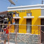 PATI – TMMD Reguler ke-111 Kodim 0718/Pati, bersama-sama warga melakukan pengecatan poliklinik desa yang ada dikantor Balai Desa Tamansari. Sebelumnya, kantor poliklinik