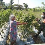 Pesonel satgas TNI Manunggal Membangun Desa (TMMD) Reguler ke -111 Kodim 0718/Pati, membantu memanen kacang Panjang milik warga Desa Tamansari, Kecamatan Jaken,