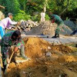 Pati – Anggota Satgas TMMD Reguler ke-111 Kodim 0718/Pati, tampak terlihat bersemangat gotong-royong antara anggota Satgas dan warga dengan tidak mengenal rasa