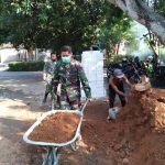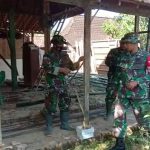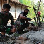 Pelda Mardiyono dan sertu Hartono terlihat bergelut dengan bekas pondasi rumah milik Syukur (56) warga desa Tamansari Rt.01/02 penerima bantuan rehab rumah