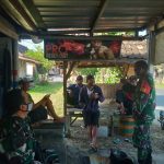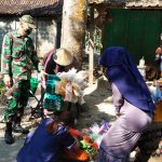 Sertu Joko Supriyanto salah satu anggota Satgas TMMD Reguler 111 Kodim Pati terlihat menghampiri kerumunan ibu-ibu yang sedang berbelanja dengan pedagang sayur
