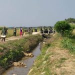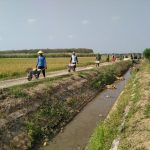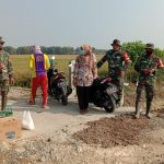 Pati- Di jalan penghubung antar desa ditengah persawahan, dikanan dan kiri terlihat pepadian menguning yang siap untuk dipanen, anggota satgas pra TMMD