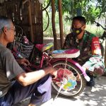 Pati – Serda Subakir salah satu anggota Satgas TMMD Reguler 111 Kodim Pati disela-sela waktu luangnya melaksanakan Komunikasi Sosial (Komsos) di bengkel