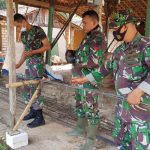 Pati – Teriknya matahari yang cukup menyengat di Desa Tamansari, Kecamatan Jaken, Kabupaten Pati, Jawa Tengah sangat dirasakan oleh Satgas TNI Manunggal