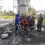 Pati – Teriknya matahari yang cukup menyengat di Desa Tamansari, Kecamatan Jaken, Kabupaten Pati, Jawa Tengah sangat dirasakan oleh Satgas TNI Manunggal