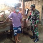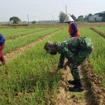 Pati – Disela-sela kesibukannya sebagai anggota Satgas TMMD Reguler ke-111 Kodim Pati, Serda Sukarji menyempatkan membantu bapak Sunaryo (52) warga Dukuh Pandahan