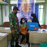 Selimbau – Dukung pelaksanaan vaksinasi covid-19, PJ Danramil 10/Selimbau Serka Eko lakukan pengawasan dan pendampingan penyuntikan vaksin covid-19 kepada Warga Masyarakat di
