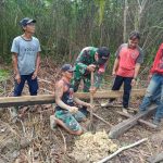 Ulak Pauk – Sebagai wujud kebersamaan dan meningkatkan kerja sama di wilayah binaan, Babinsa Koramil 1206-05/Embaloh Hulu membantu warga binaannya dalam membangun