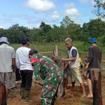 Embaloh Hilir – Sebagai wujud kemanunggalan TNI dan Rakyat, Babinsa Koramil 1206 – 01/Embaloh Hilir, Kopda Sandi membantu warga binaannya dalam membangun