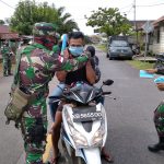 Putussibau – Guna mencegah penyebaran COVID-19 Koramil 1206-06/Putussibau Utara melaksanakan operasi yustisi dan membagikan masker secara gratis kepada masyarakat di kecamatan Putussibau